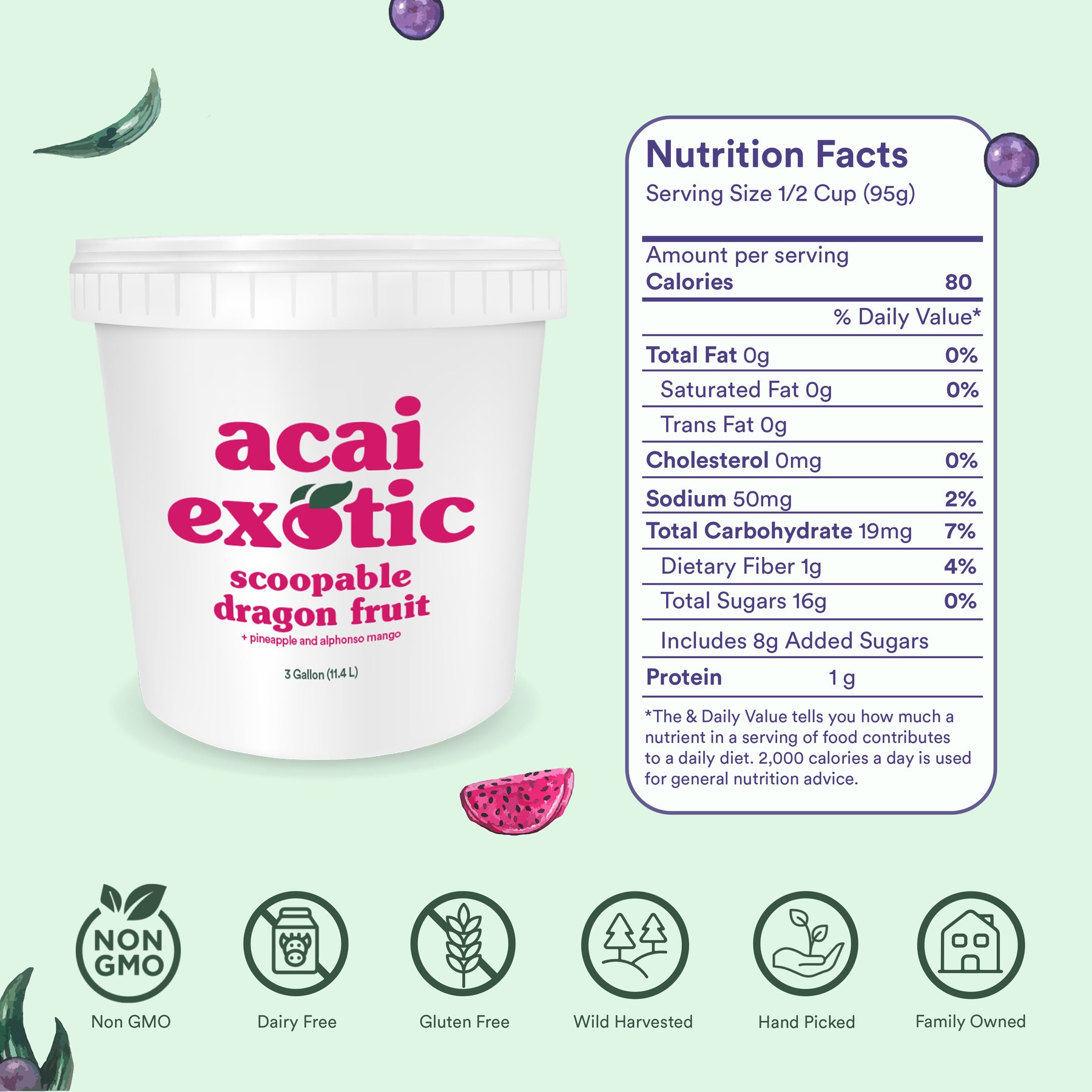 Our 3-gallon Dragon Fruit Sorbet is a vibrant, exotic treat tailored for stores that prefer a simple, no-blend option to delight customers. Crafted from premium pink dragon fruit blended with alphonso mango purée, pineapple purée, and a touch of natural sweeteners, this scoopable sorbet boasts a smooth, refreshing texture and a tangy-sweet tropical flavor reminiscent of fresh kiwi and pear with hints of berry. Rich in antioxidants, vitamin C, fiber, and essential nutrients from its superfruit base, it's a nutritious choice for health enthusiasts seeking a low-fat, dairy-free dessert or vibrant smoothie bowl foundation. Pre-mixed and ready to serve directly from the pail, this user-friendly product streamlines your service while infusing your menu with bold, colorful appeal. Discover the effortless way to offer premium quality and tropical indulgence with every scoop of this dragon fruit sorbet.